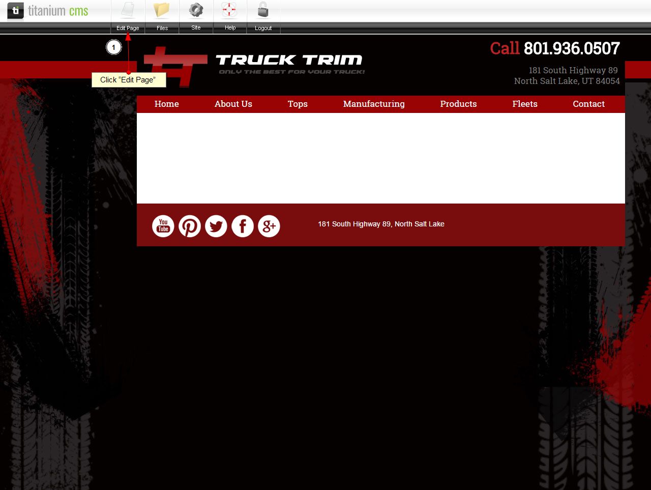 - Go back to your site and click on the page you want to add a map to and Click “Edit Page”.